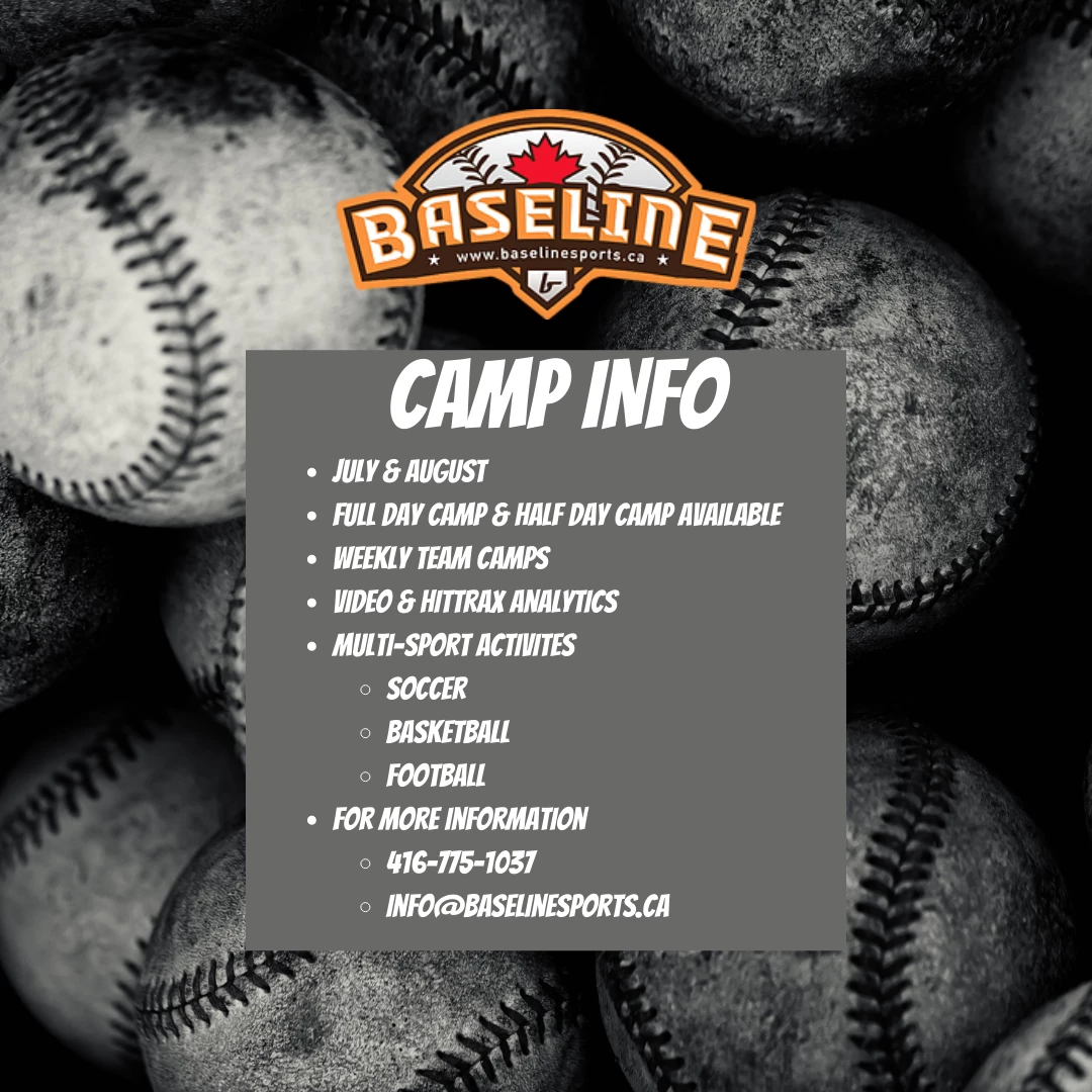 In case of inclement weather, camp will be redirected to Baseline Sports.