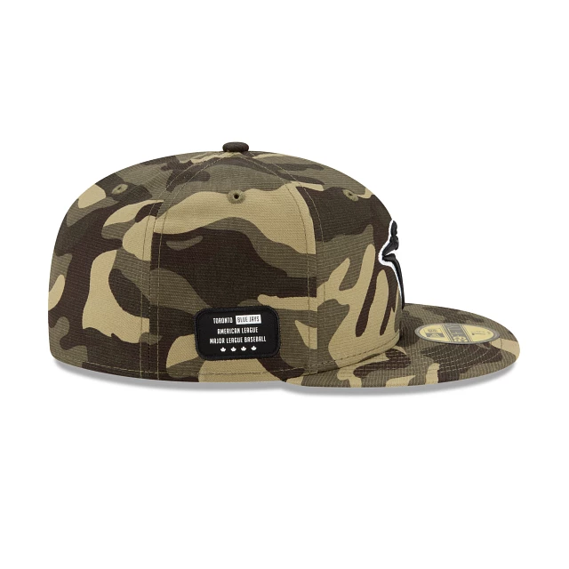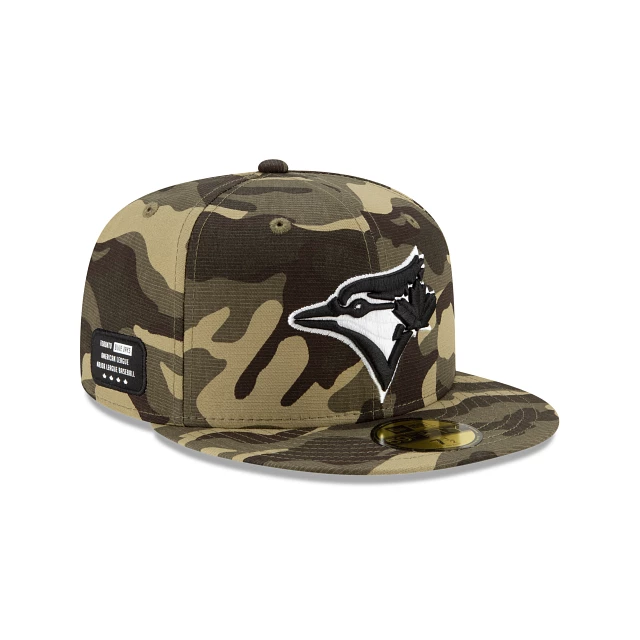 Honor our armed forces with the Toronto Blue Jays Armed Forces Weekend 59FIFTY Fitted Cap featuring a camo pattern with an embroidered Blue Jays logo at the front panels, military inspired team patch at the right-wear side and an MLB Batterman logo at the rear.